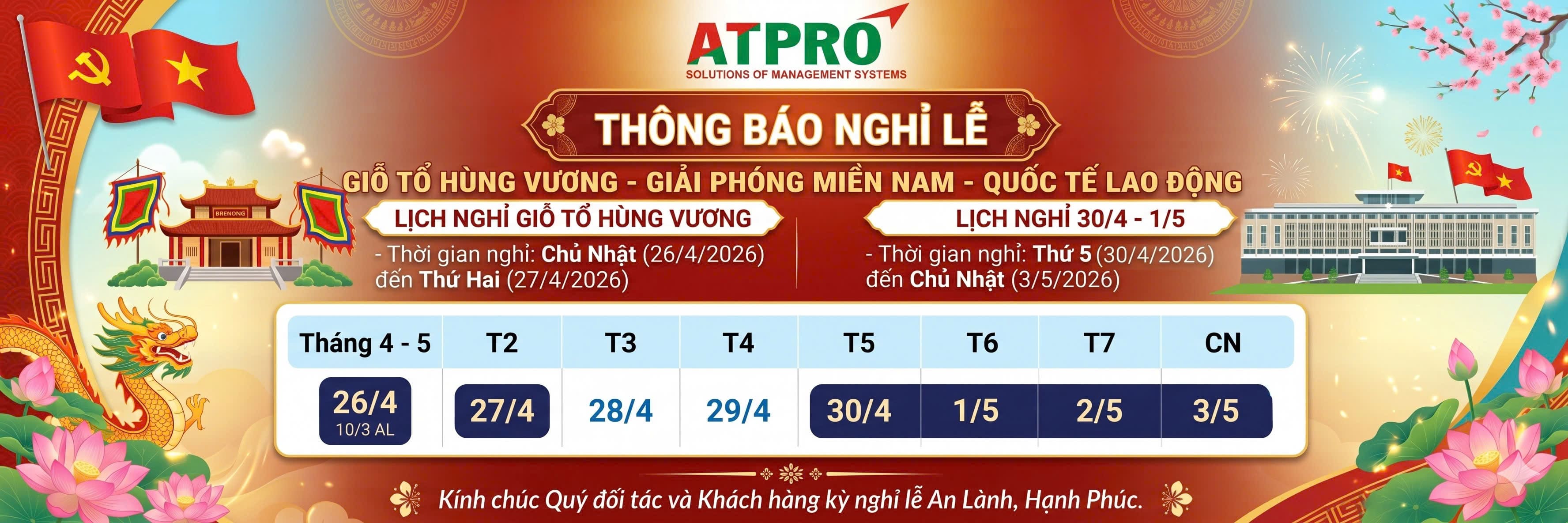GIỖ TỔ HÙNG VƯƠNG - GIẢI PHÓNG MIỀN NAM - QUỐC TẾ LAO ĐỘNG