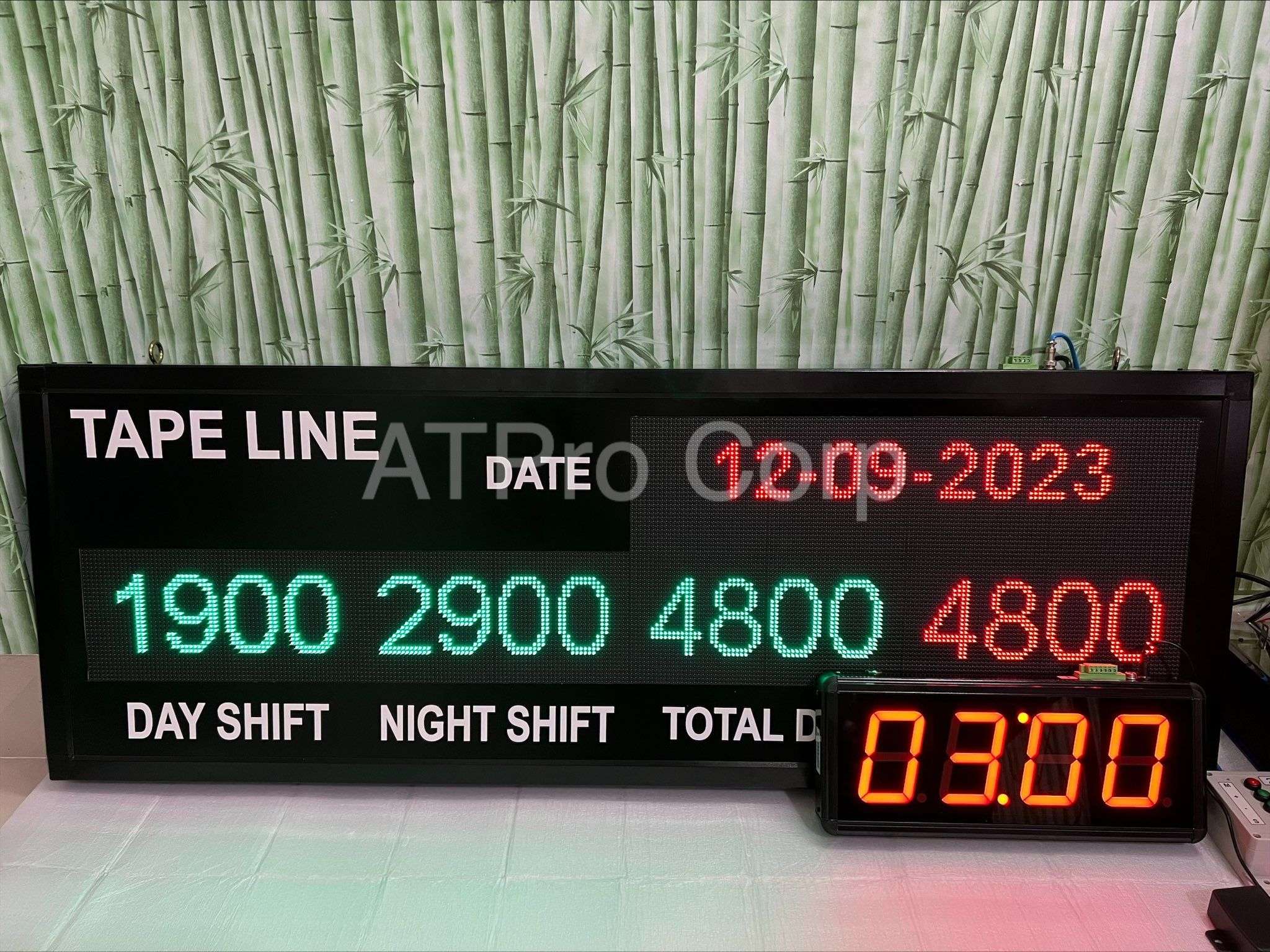 Theo yêu cầu của phía khách hàng, ATPro đã triển khai 1 bảng led matrix theo dõi tiến độ năng suất sản xuất và 1 đồng hồ đếm ngược 4 số.