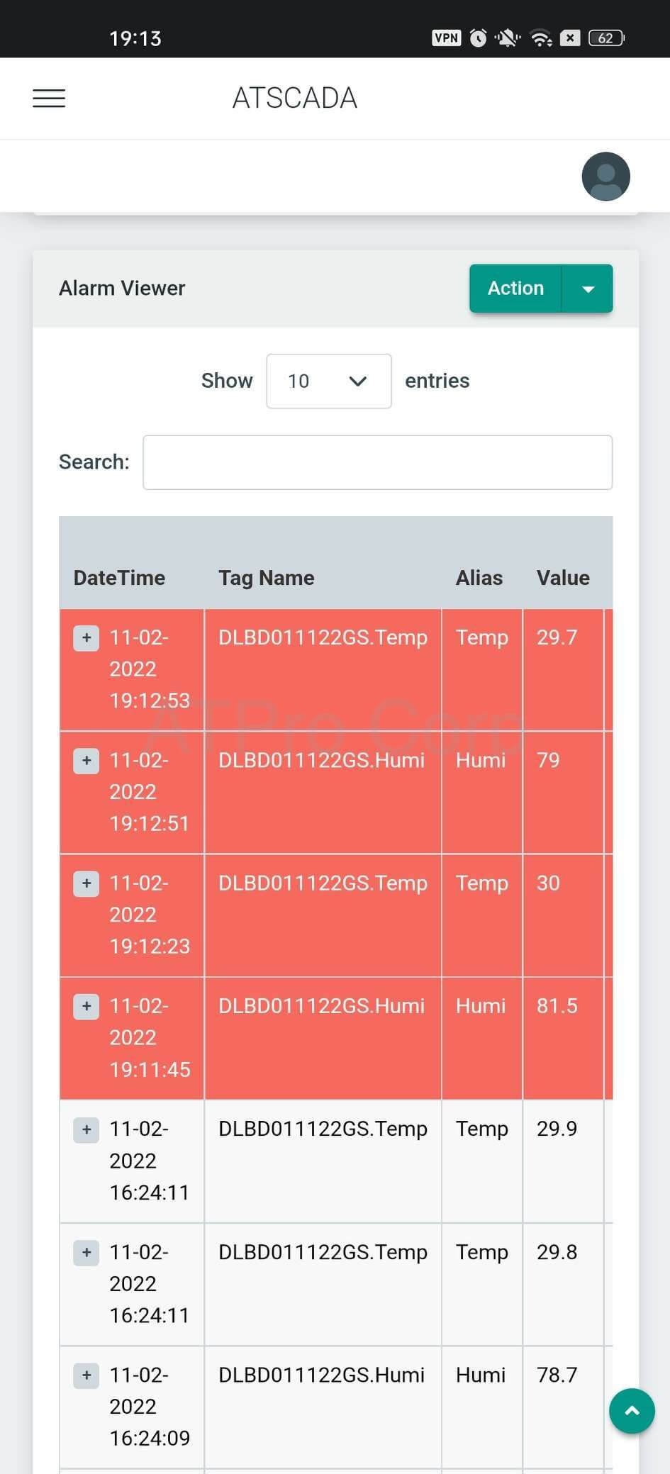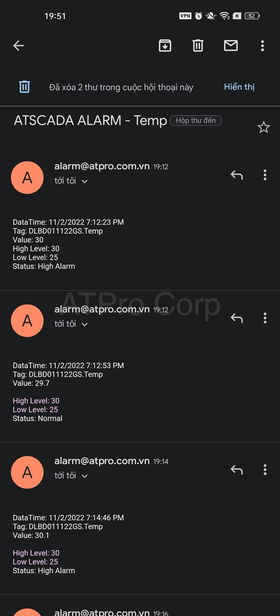 - Dữ liệu nhiệt ẩm lưu lên ATSCADA Cloud server.
