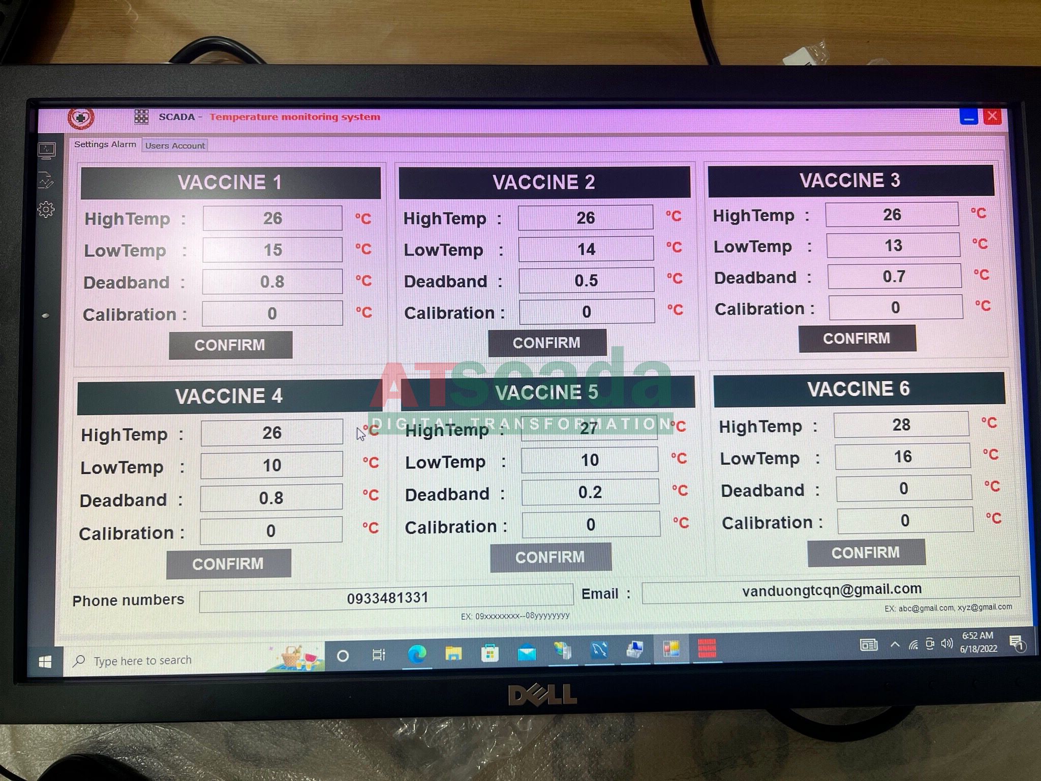 - Chức năng: hiển thị giao diện giám sát giá trị nhiệt độ của các tủ Vaccine trên màn hình.