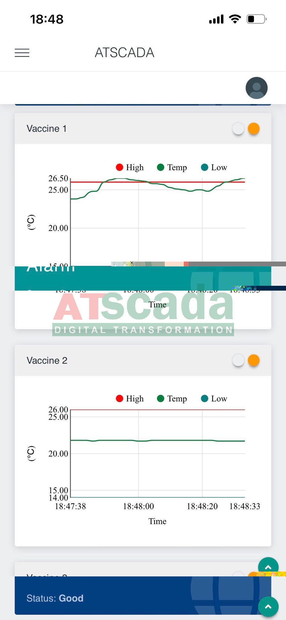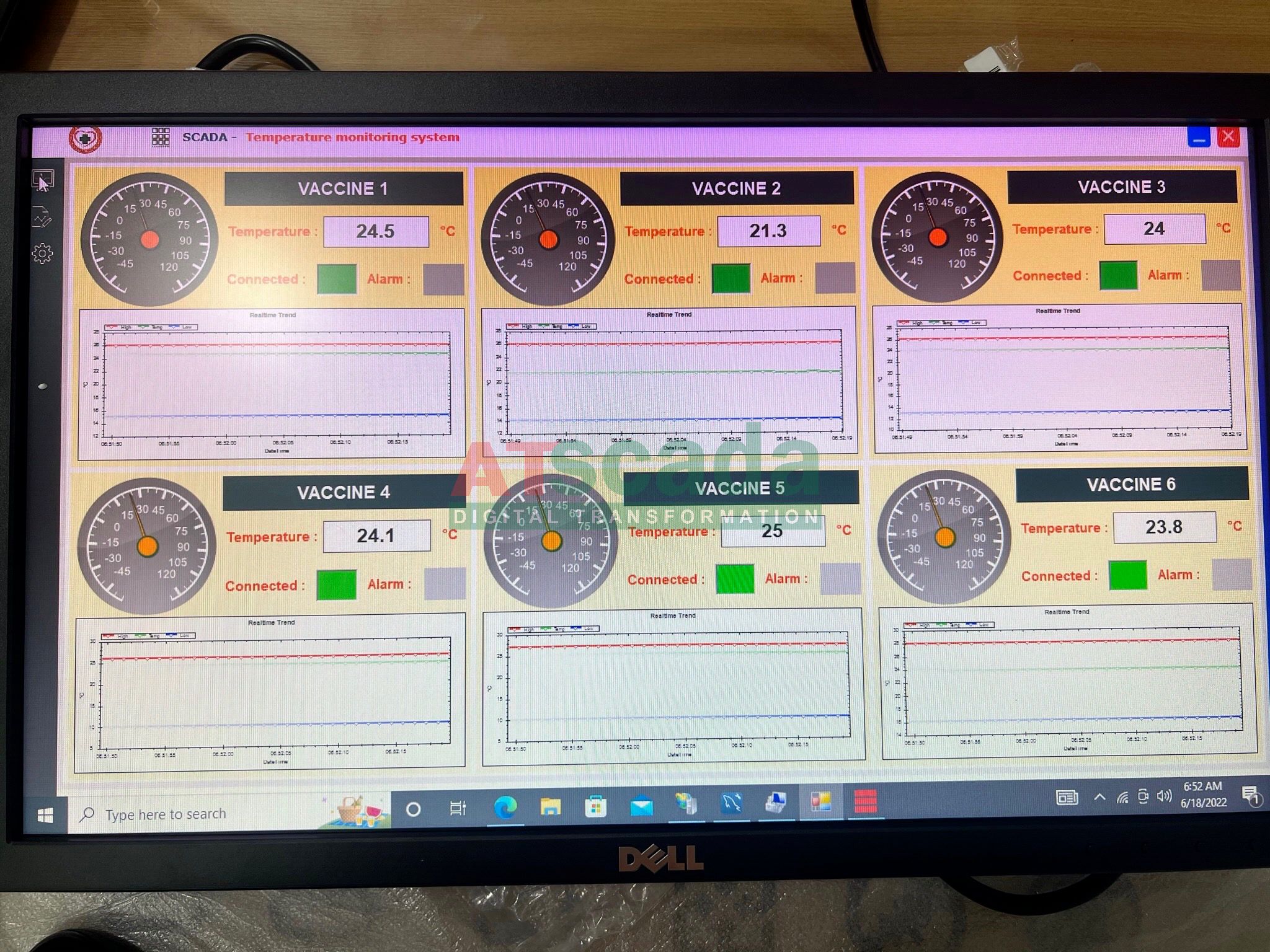 Phần mềm giám sát nhiệt độ được tích hợp trong hệ thống cảnh báo nhiệt độ kho dược. Được lập trình bởi đội ngũ kỹ sư có nhiều kinh nghiệm ATSCADA Lab. Giao diện được thiết kế thân thiện với người dùng. Phần mềm chạy trên máy tính ATBOX-G3-J4125.