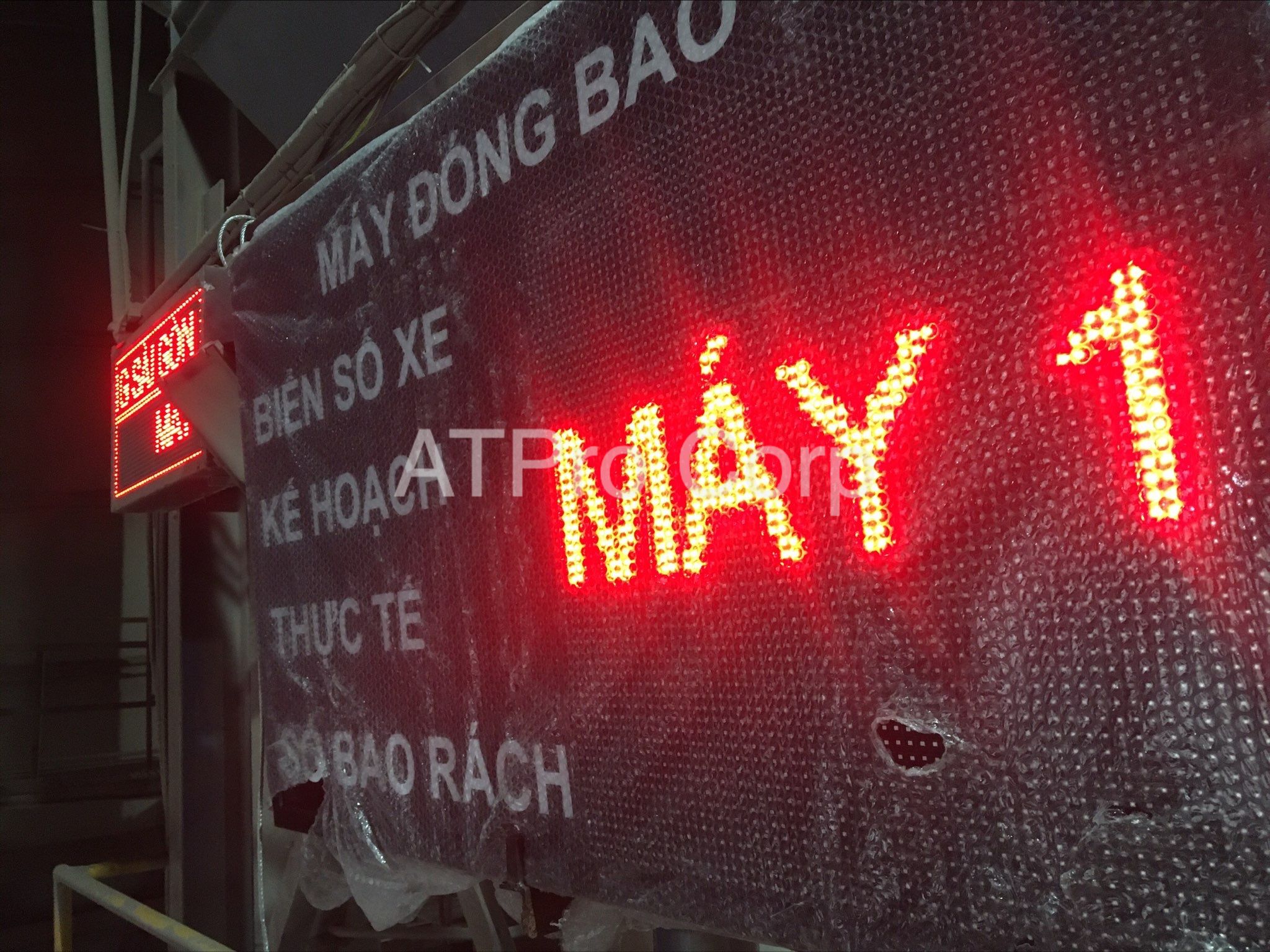 - Hiển thị nội dung: Hiển thị biển số xe, số lượng cài đặt, số lượng thực tế, số bao rách. Chiều cao chữ hiển thị ~12cm;