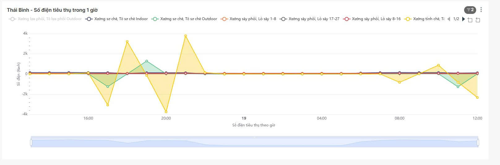 Hệ thống còn được tích hợp vào phần mềm Power BI giúp hiển thị số liệu điện năng tiêu thụ theo thời gian thực, từ đó hỗ trợ phân tích các biểu đồ xu hướng thực tế của từng nhà máy.