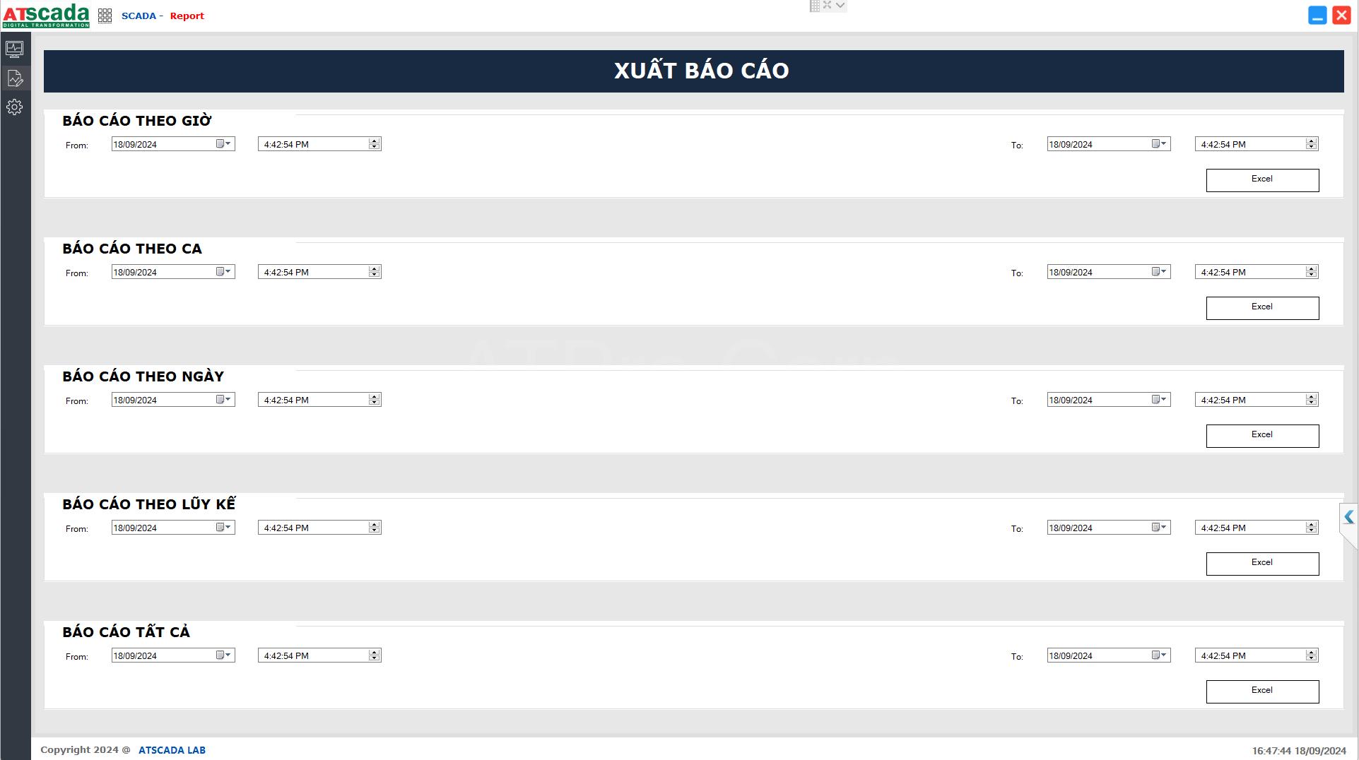 - Tự động lưu trữ dữ liệu, xuất báo cáo Excel và biểu đồ phục vụ đánh giá hiệu suất.