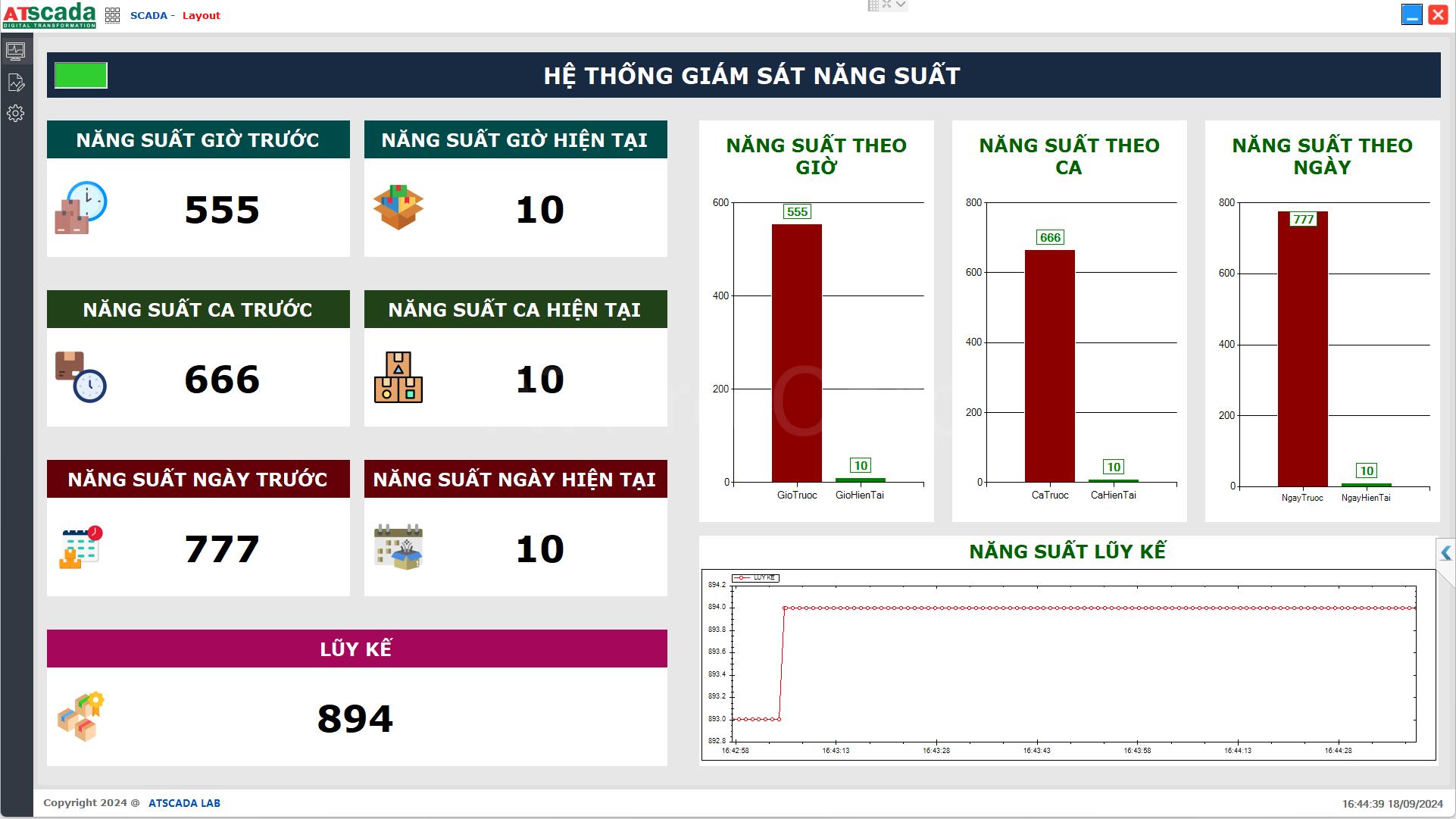 - Giờ hiện tại: hiển thị bằng sản lượng đếm từ cảm biến