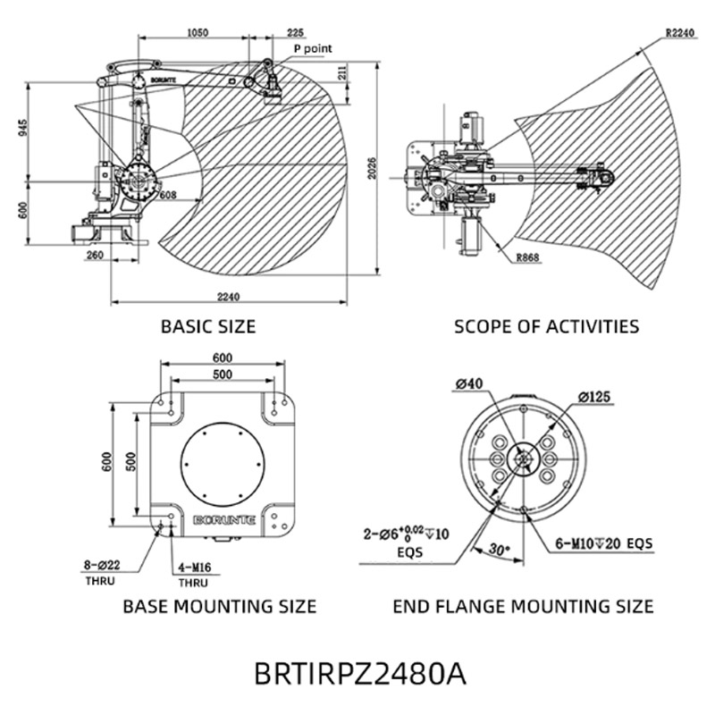 Các thông số cơ bản của cánh tay robot xếp pallet 4 trục BRTIRPZ2480A