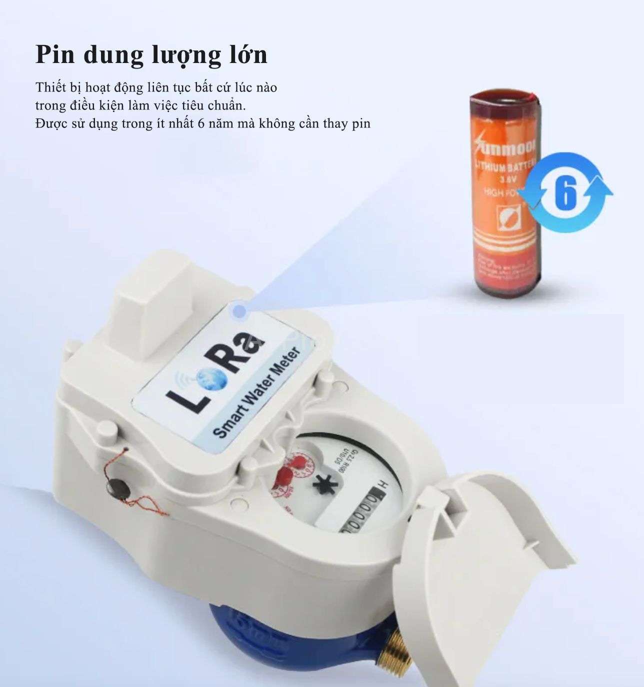 - Thời lượng pin sử dụng tối thiểu là 6 năm để truyền dữ liệu một lần mỗi ngày