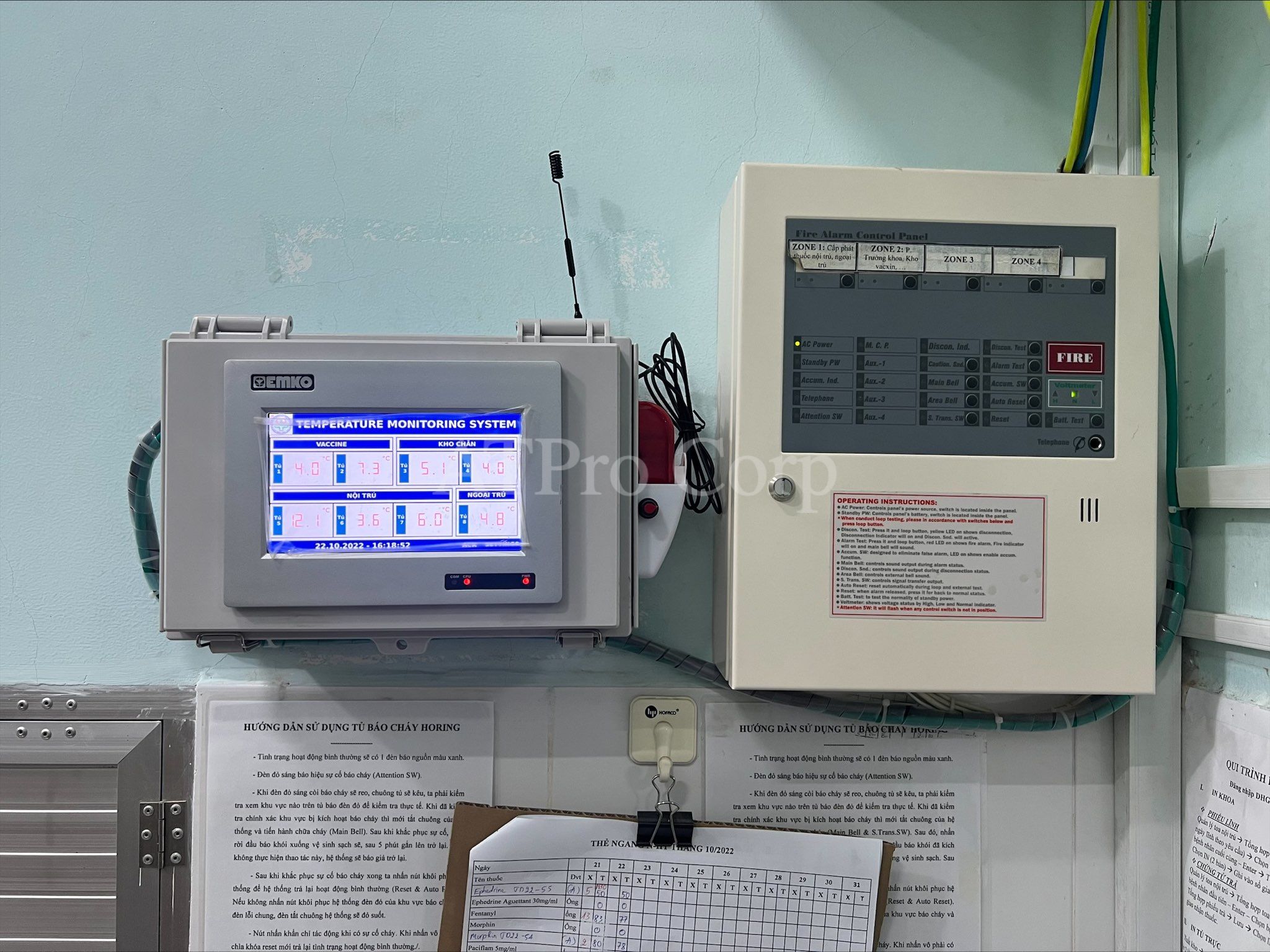 Hệ thống giám sát nhiệt độ độ ẩm kho tủ vaccine được sản xuất và thiết kế bởi ATPro Corp. Hệ thống với chức năng giám sát và cảnh báo mức nhiệt độ tại cả tủ vaccine.