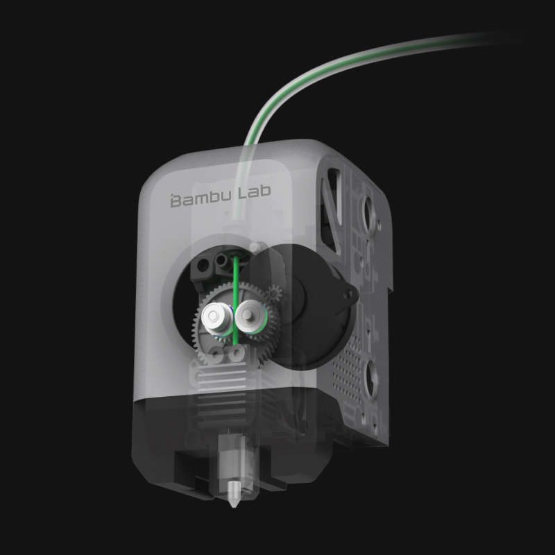 Máy in 3D Bambu Lab P1S được trang bị máy đùn dẫn động trực tiếp, trong đó động cơ được kết nối trực tiếp với đầu đùn, giúp kiểm soát chính xác quá trình đùn & rút sợi nhựa. Nhờ cơ chế truyền động tối ưu, dòng chảy vật liệu luôn ổn định, giảm hiện tượng trễ hay tắc nghẽn, mang lại bề mặt bản in mịn, sắc nét & không bị nhoè, ngay cả ở tốc độ in cao.