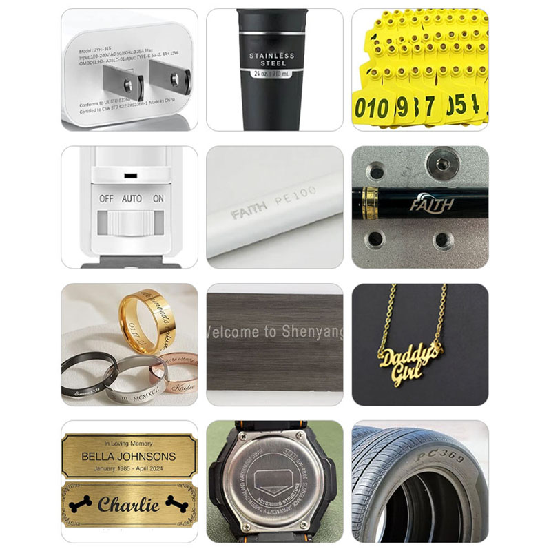 Máy khắc laser sợi quang cầm tay Faith PL602-N có thể khắc hiệu quả trên nhiều vật liệu kim loại như inox (thép không gỉ), thép carbon, nhôm, hợp kim nhôm, titan, kim loại phủ sơn, anodized,… Ngoài ra, máy cũng có thể đánh dấu 1 số vật liệu phi kim như nhựa kỹ thuật, nhựa ABS.