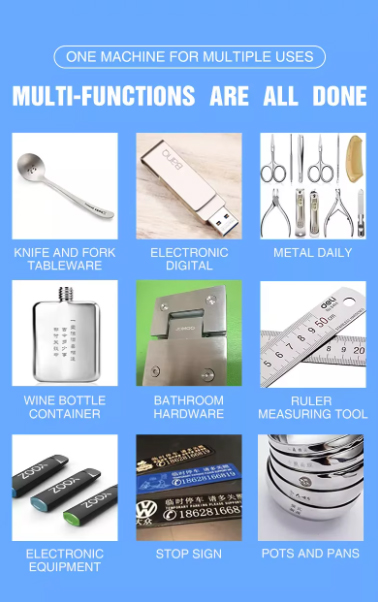 Máy khắc logo kim loại mini công nghiệp 20W/30W/50W Faith PL130 có thể gia công trên nhiều loại vật liệu như: