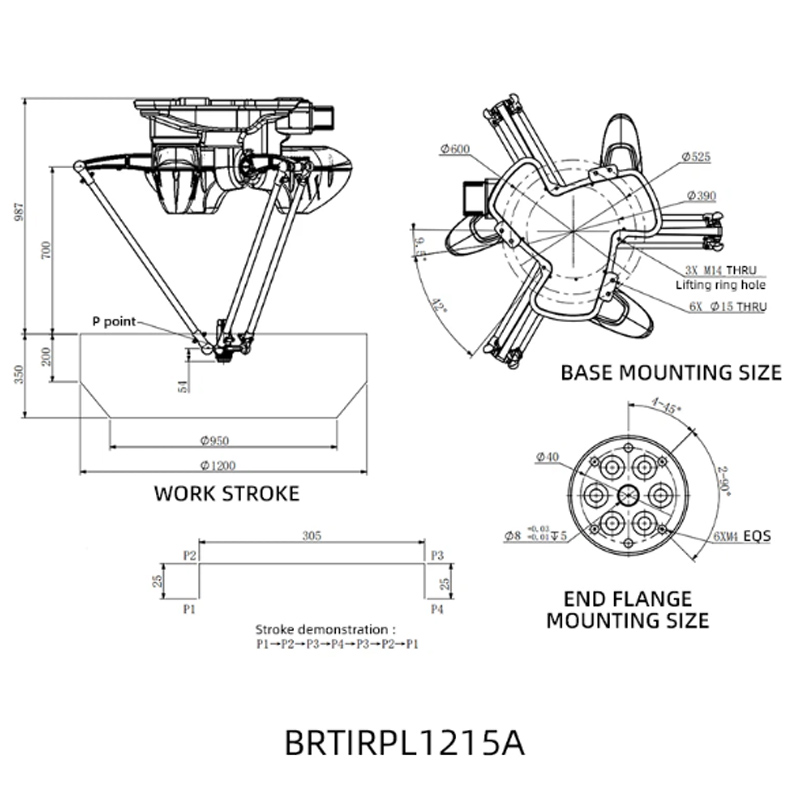 Các thông số cơ bản của robot phân loại song song 4 trục BORUNTE BRTIRPL1215